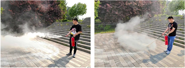 演练现场设置酒精块模拟火源。员工在发现模拟“火情”后,迅速向主管冷静报告,清晰说明火场信息与位置。另一名员工严格按照“提、拔、握、压、喷”的五步法进行操作。多名员工依次进行实操练习,安全员在现场全程指导,及时纠正操作细节。提升员工初期火灾扑救技能,熟练掌握关键应对程序,切实增强应对突发火情的能力。